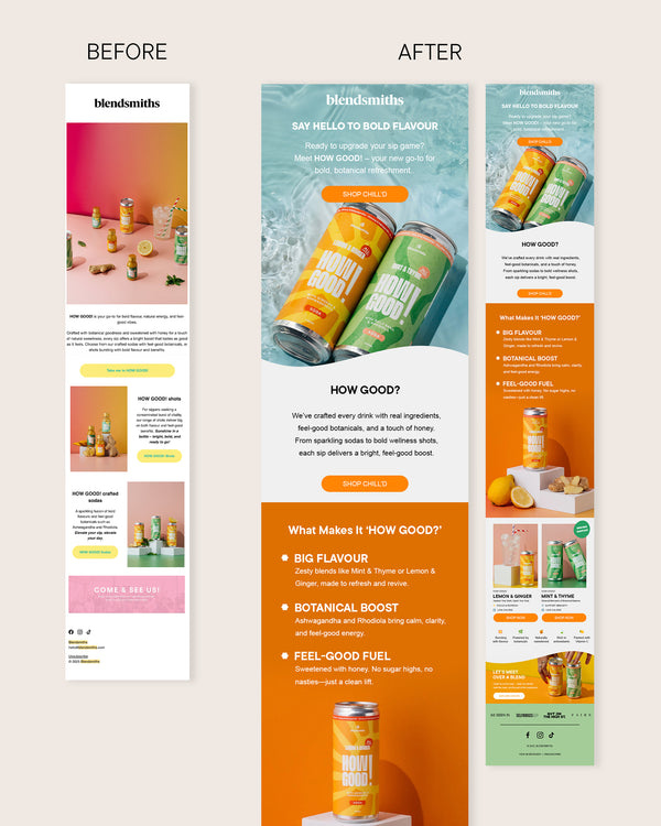 Full email refresh — from flows to campaigns — with a bold, cohesive look.
